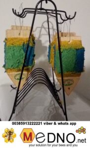( Beeswax Foundation sheet) and applied by layer of propolis as well as extraction of certain rooted herbs as well as a combination of various essential oils. It makes him attractive to the runaway swarm of bees. It is set up by cutting the upper part of the bag, packing and placed in a PVC cup together with the lower cover and the end of the branch of the native wood to the desired height facing south, preferably in the shade. At a height of 1 meter to 3.5 meters. Another way is to set up in the bee skep beehive to a height of up to 3.5 meter. By setting up the bee skep beehive . Set the appropriate longer stick , for which we attach the bait carrier. Taking into account that the flat (bottom) part of the bee skep beehive . with a sharp angle facing up, toward the sky. The third way is to set up an empty hive with old honey frames , without honey. By placing it with or without a plastic cups in bee hive . Tie it for the upper part of the frame . Closer to the hive entrance . Set the hive to a height of a minimum of one meter to three meters . Facing entrance of hives to the south. More detailed instructions as well as the drawing of the bait and how it works can be taken over on the site of the Intellectual Property Institute in Belgrade where it is public and visible under the number of RS 1680 U1. Also on YouTube channel https://youtu.be/xcjasnbk9fu