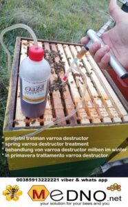 - Preparat se pokazao kao jedino potrebno sredstvo uspiješno kod tretmana u prolječe te u ljetnom a i u zimskom tretmanu protiv varoje destructor . Prvi puta je upotrebljeno 2011 g . Eterčna ulja i ljekovito bilje imaju odličan učinak kod suzbijanja krečnog ( vapnenastog ) legla . Čak i pčeljinje zajednice takozvani inkubatori varoje destructor nakon tretmana i velikog pada varoje se odlično razvijaju u proljeće .
