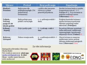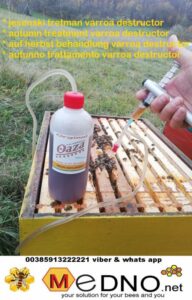 TRETIRANJE PČELJINJE ZAJEDNICE : može se obaviti proljetno tretiranje 1-3 x počevši od 01.04 tekuče godine ,osnovni tretman ljeto/jesen 4 x svakih 6 – 10 dana ,