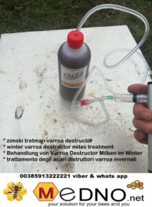 Napominjem da u vrijeme kada nema legla dovoljno je izvršiti samo jedno polivanje. To je vrijeme smiještanja rojeva sa grane i kasno u jesen kada matica prestaje da leže. Ako u to vrijeme varroa pada nakon 15 dana ponoviti jedno polivanje.Čuvati na sobnoj temperaturi zaštićeno od sunca i djece i paziti da ne dođe u kontakt sa očima.