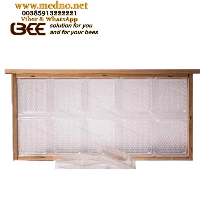 Plastične podloge za višekratnu upotrebu sastoje se od dva identična dijela, s poluizgrađenim pčelinjim stanicama visine stijenki 3-3,5 mm.